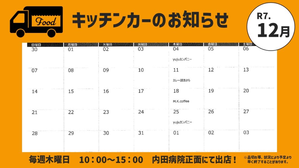 令和7年12月のキッチンカーの予定につきまして、チラシをご参照ください。