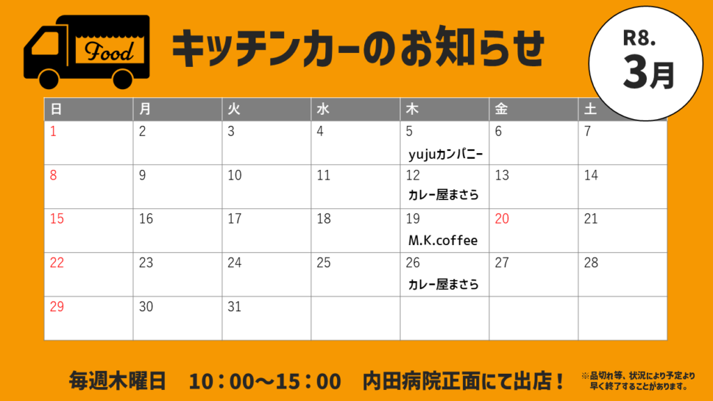 令和8年3月・4月のキッチンカーの予定につきまして、チラシをご参照ください。